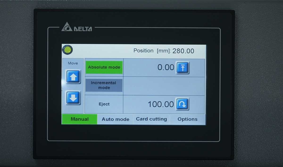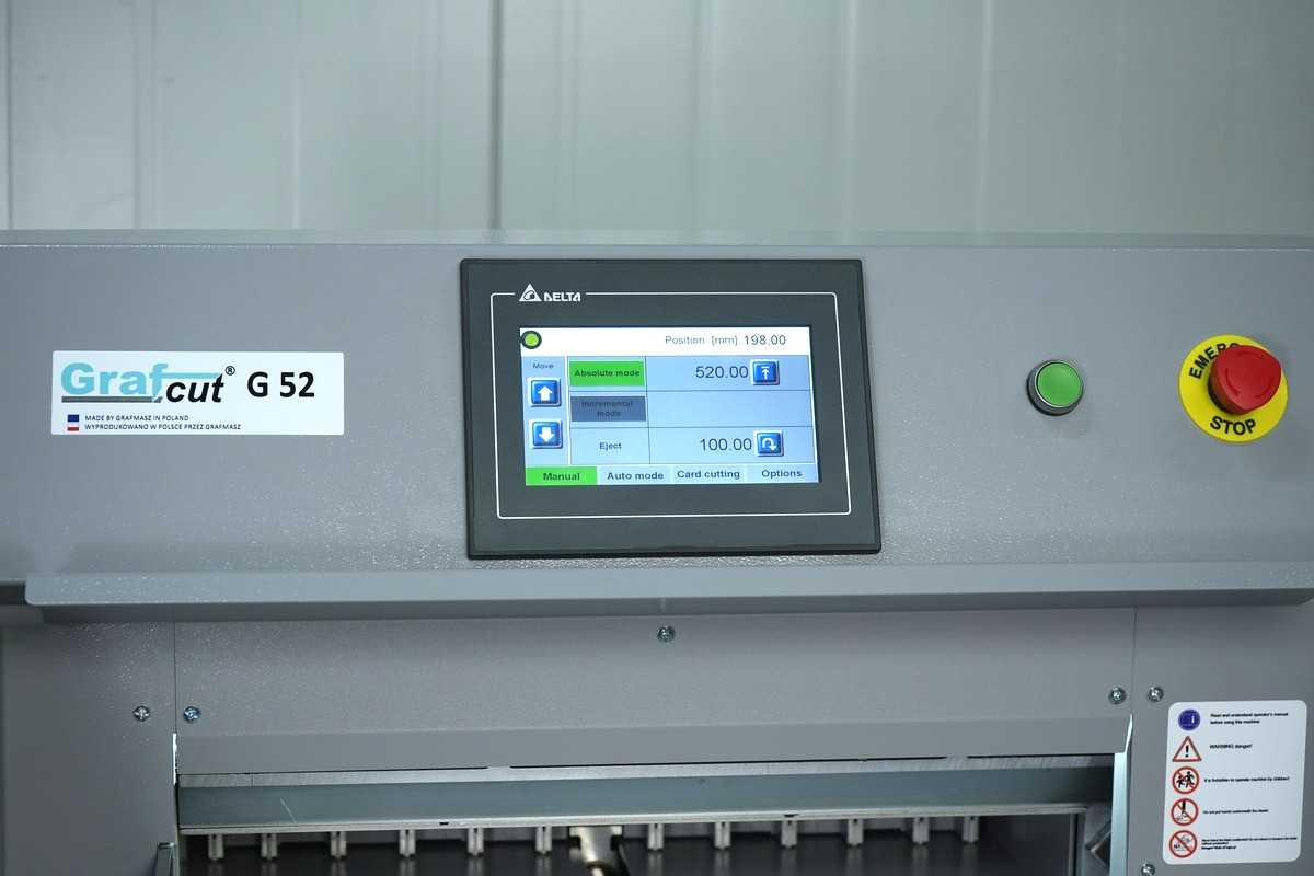 ist über den Touch-Screen justierbar und der Grafcut 52 verfügt über eine Stapelhöhe von 80 mm.