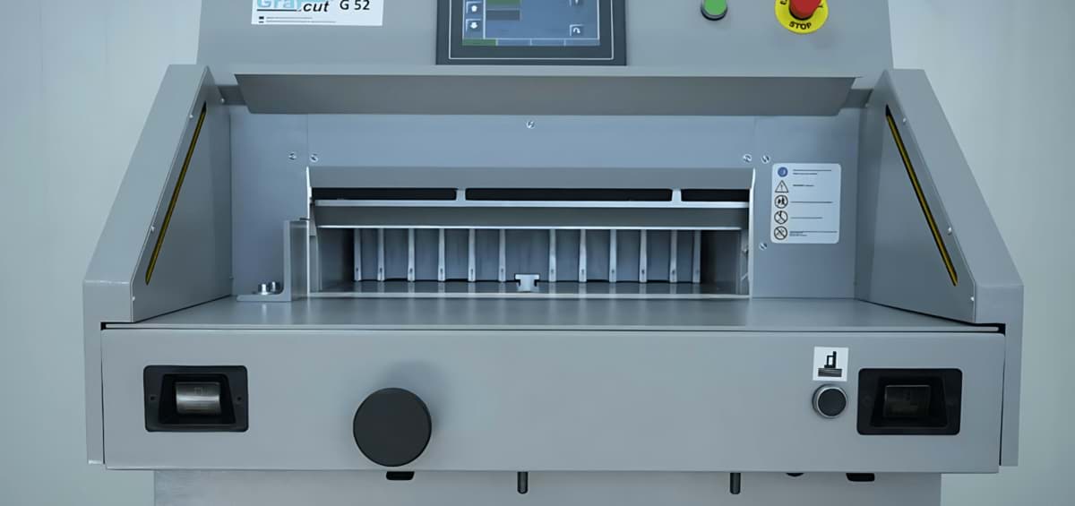 Grafcut 52E: Elektromechanischer Stapelschneider mit einer Arbeitsbreite von 520 mm. Damit deckt er
